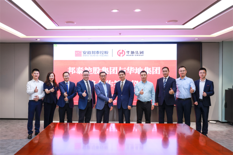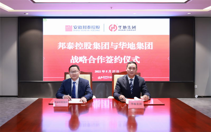 2021年5月27日,華地集團與安徽邦泰控股集團簽署戰略合作協議,雙方正式攜手,充分發揮自身優勢,資源共享,攜手共贏,共建美好生活和城市新愿景。
