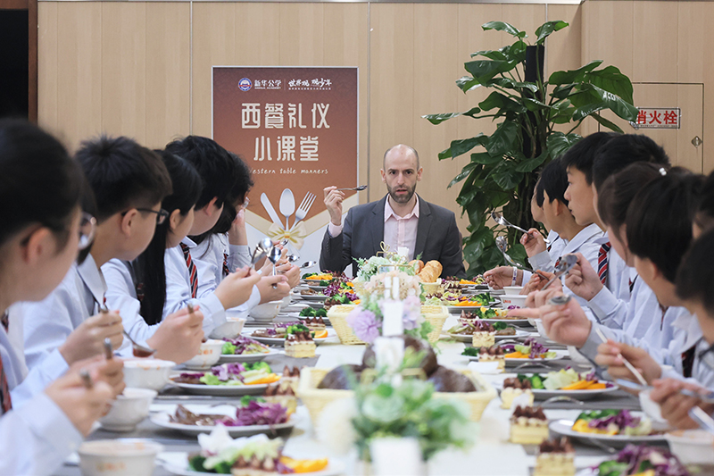 學校以研究性學習為手段,以探究性合作為提升點,以跨學科融合為思維訓練模式,結合學科教學本身特點和規律深入開展“項目制學習”(PBL),促進學生學養、素養、品位的全面提升。同時,積極構建科、藝、體、衛、人文融合校本課程,培養興趣、發展特長、形成專長,提高學習能力和綜合素養,推動育人高質量發展。目前,學校已形成種類更多,層次更高,特色更明的ECP課程體系,在滿足學生學習需要的同時,培養興趣、發展特長、形成專長。學校鼓勵教師弘揚“文雅、優雅、高雅”三雅氣質,讓教師爭做學生喜歡和敬佩的老師,倡導學生展現“禮貌、禮儀、禮節”三禮風采,讓學生找到好孩子的感覺,增強學校內生活力。學校獨創的西餐禮儀小課堂,實現禮儀教育“課程化”,每個孩子收獲的不僅有知識、樂趣、體驗,還有詩和遠方的品位,學生喜歡,家長贊嘆。
