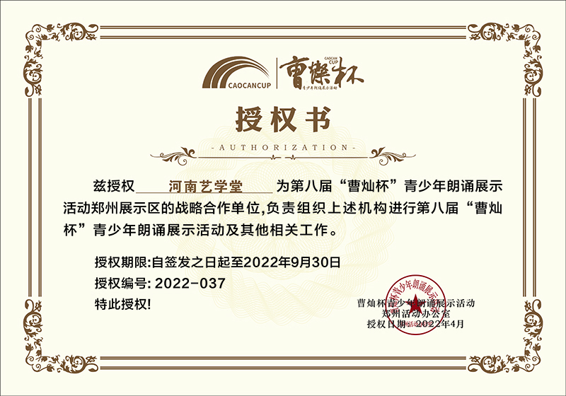 河南藝學堂獲“曹燦杯”全國青少年朗誦展示活動優秀合作單位稱號