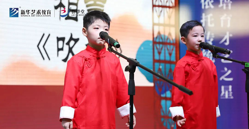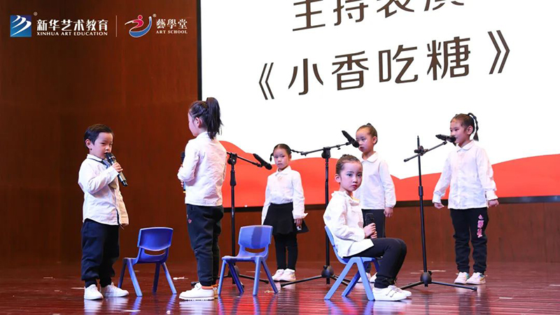 作為一站式藝術(shù)教育平臺,藝學(xué)堂一直將青少兒全面發(fā)展放在重中之重,其開設(shè)的表演主持課程,通過朗誦、故事、相聲等形式,學(xué)習(xí)韻律、節(jié)奏、語音、語氣變化來表現(xiàn)不同情緒,并加入適當(dāng)?shù)闹w語言做輔助表演,鍛煉孩子在公眾場合自我展示的信心和表現(xiàn)力,提高其語言表達能力。