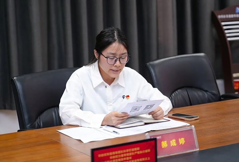 組織委員郝成婷老師領學《關于進一步嚴肅整治違規吃喝問題的通知》,從政策背景、整治重點、紀律要求三方面展開解讀,釋放持續“嚴”的信號,堅決遏制“舌尖上的腐敗”,營造風清氣正的校園生態。