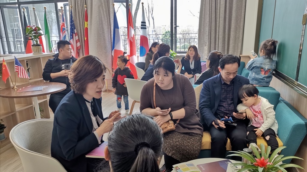 隨后,老師們帶領著家長對學校進行了全方位的參觀,每到一處都詳盡細致的講解特色。各級部Demo教室和多樣的功能教室吸引了家長們的目光:可愛童趣的幼兒園、溫馨多彩的小學、知識豐沛的初中、暢快肆意的美國高中,擊劍、高爾夫、機器人、鋼琴房等等,這是孩子們校園生活的雛形,更是學校給予家長的承諾。