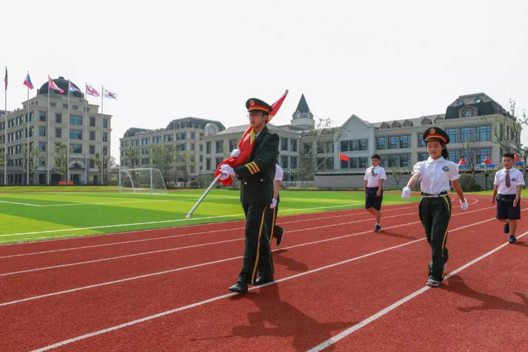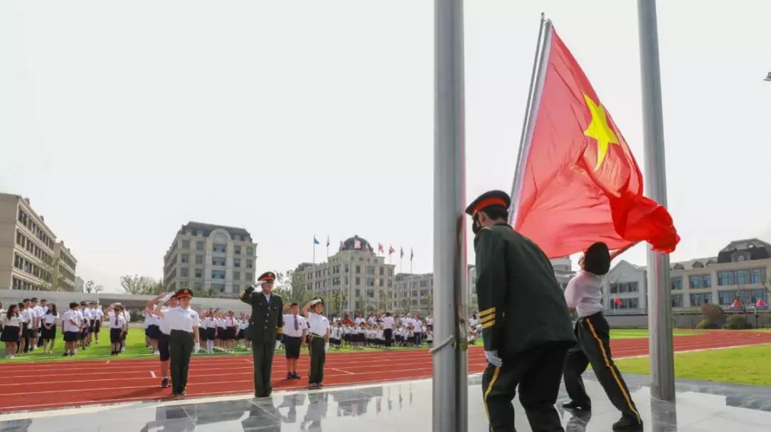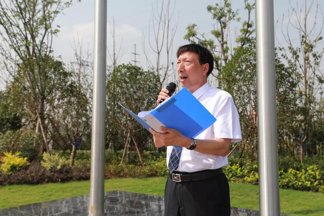 升國旗、奏唱國歌,在高亢嘹亮的國歌聲中,五星紅旗冉冉升起。伴隨著五星紅旗一同迎風飄揚的,還有新華公學校旗,新華控股集團司旗,一同見證著這一隆重而又莊嚴的時刻。