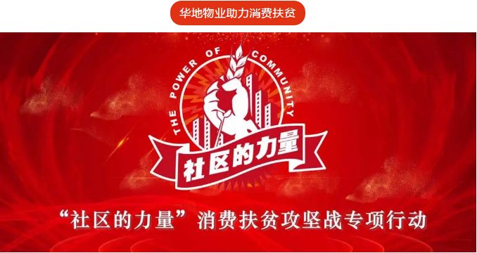 為更好發揮社區力量,助力攻堅脫貧,華地物業先后開展多次“消費扶貧”專項活動,與中國社區扶貧聯盟一起,用實際行動幫助貧困地區脫貧致富,贏得了相關部門的高度肯定和社會的廣泛贊譽。
