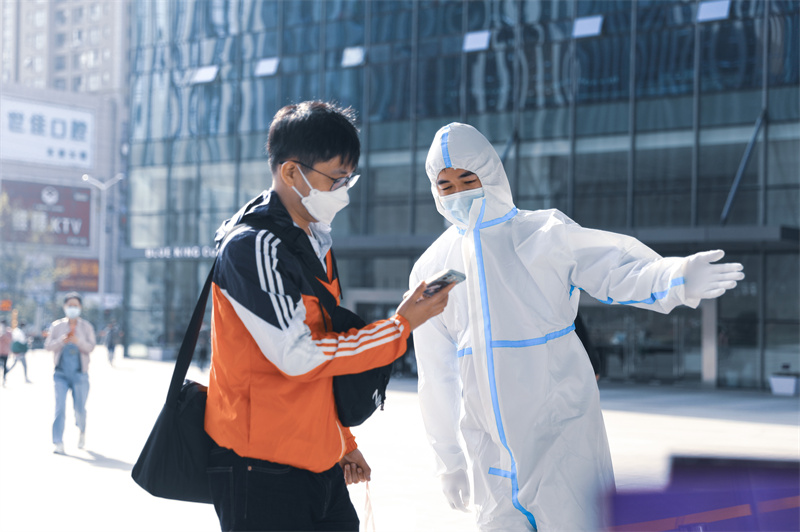 在疫情反撲的態(tài)勢(shì)下永遠(yuǎn)有這樣一群不辭辛勞的戰(zhàn)士們身著白衣,為大家筑起安全屏障“請(qǐng)大家佩戴好口罩,保持1米以上的安全距離出示健康碼,憑碼進(jìn)入,謝謝配合”。