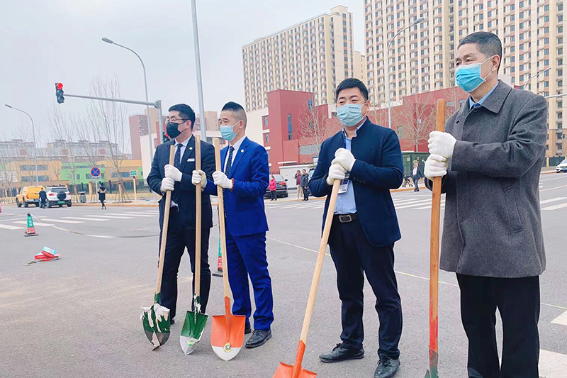 在康潤家園東區(qū)鑫立路植樹現(xiàn)場,全員干部齊心協(xié)力,每道工序都做得有條不紊,揮鍬鏟土、扶苗填坑、提水澆灌... 大家分工協(xié)作,配合默契。