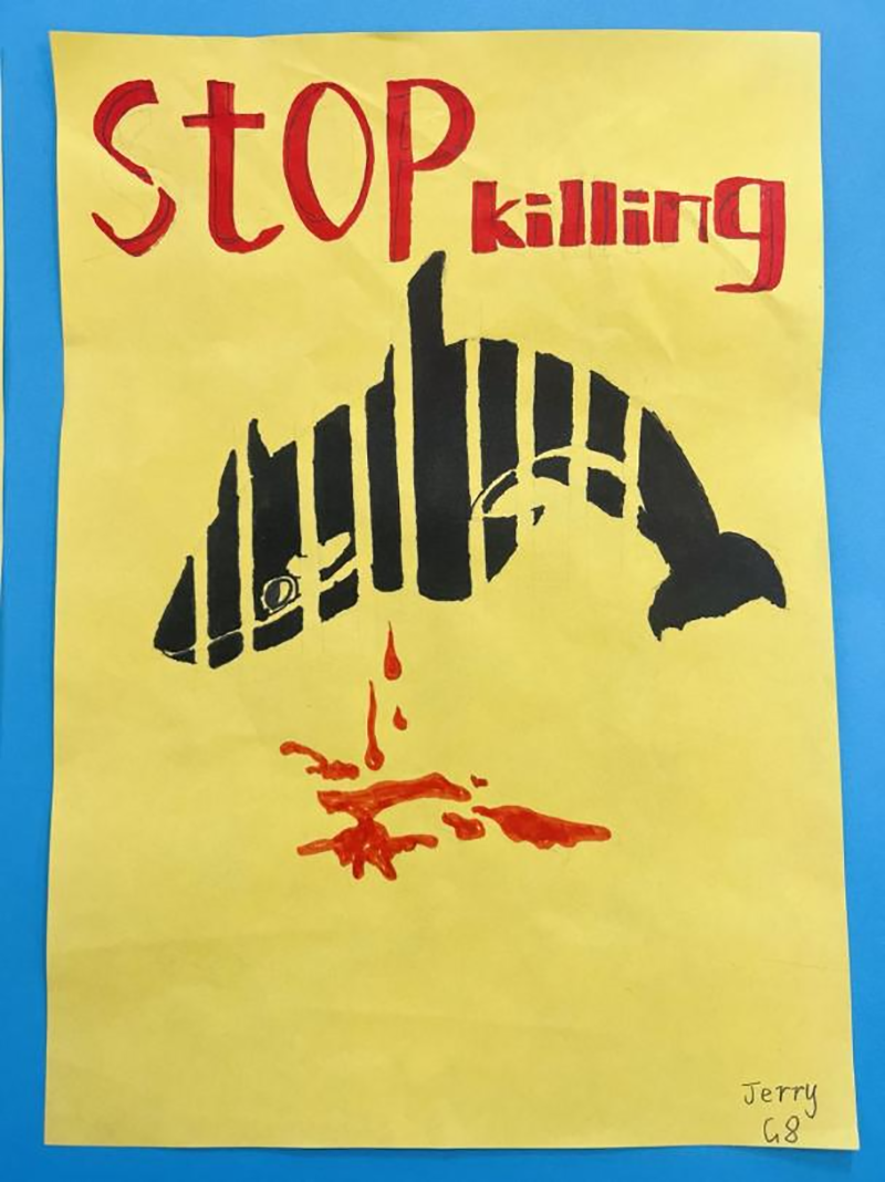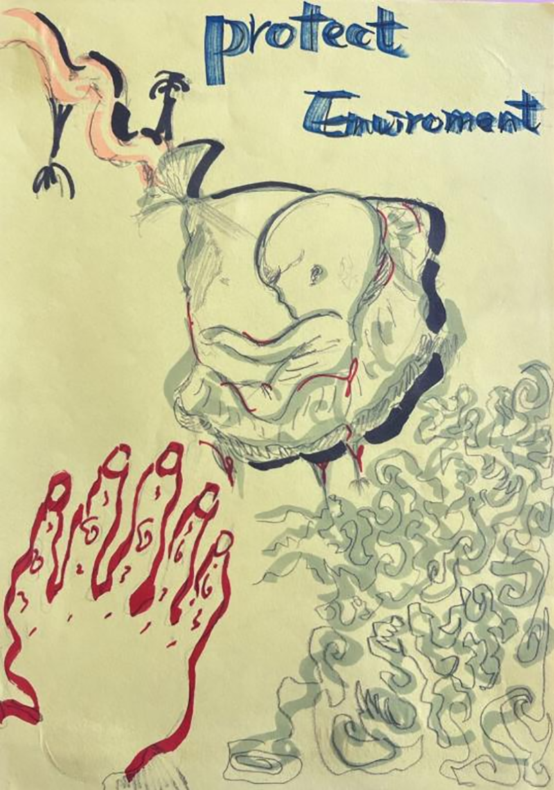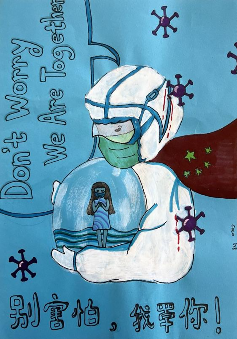 同學(xué)們從“防疫、和平、環(huán)境、保護(hù)動物...等等人文角度,開展了一系列藝術(shù)創(chuàng)作。