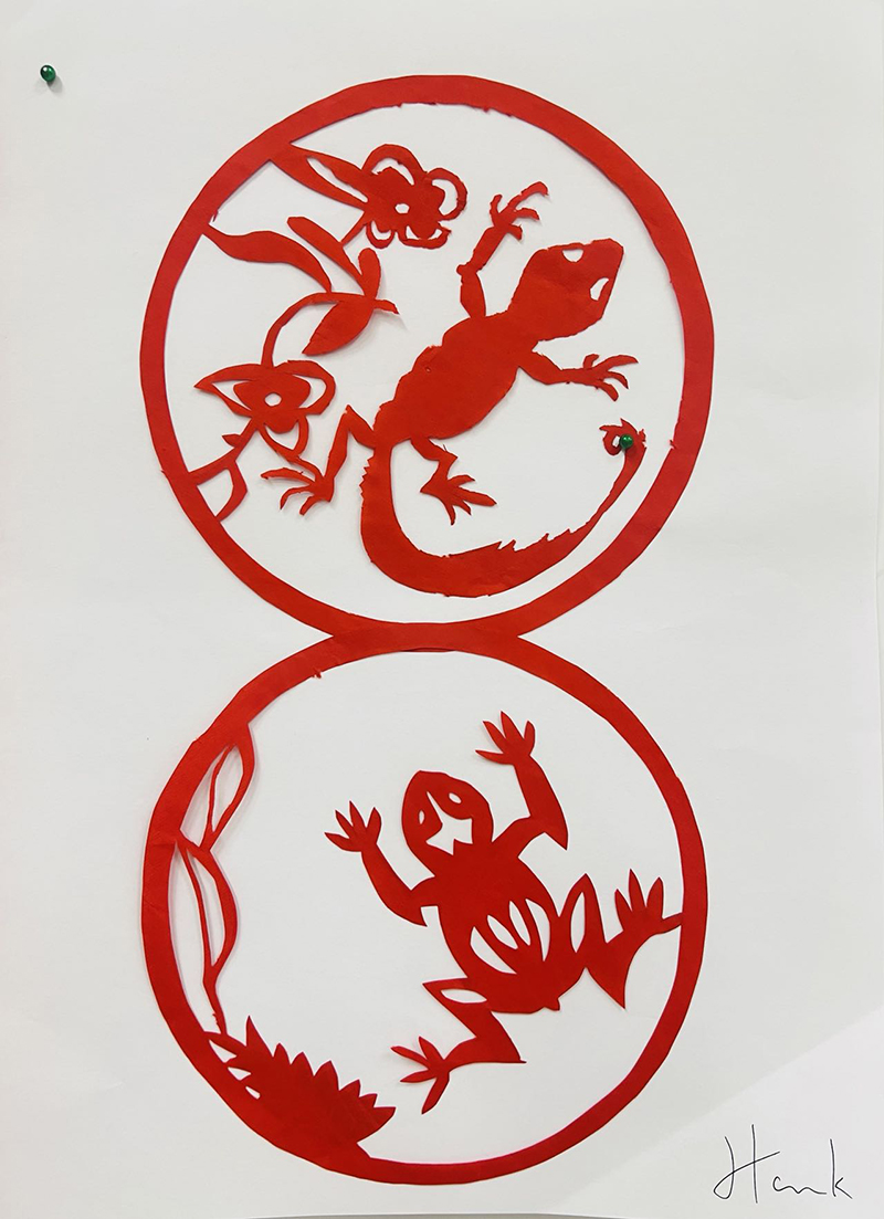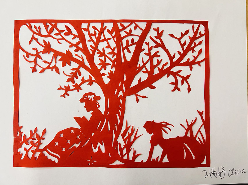 在進(jìn)行剪紙教學(xué)時,教師會設(shè)計不同的特定的場景主題,使學(xué)生根據(jù)場景,對剪紙進(jìn)行設(shè)計與制作,一來鍛煉學(xué)生的動手能力,傳承剪紙藝術(shù);二來鍛煉學(xué)生的思維能力及解決實際問題的能力;三來學(xué)生根據(jù)相應(yīng)主題剪紙創(chuàng)作,通過不同圖案體現(xiàn)不同寓意,讓視覺語言的運用能力得到有效鍛煉。