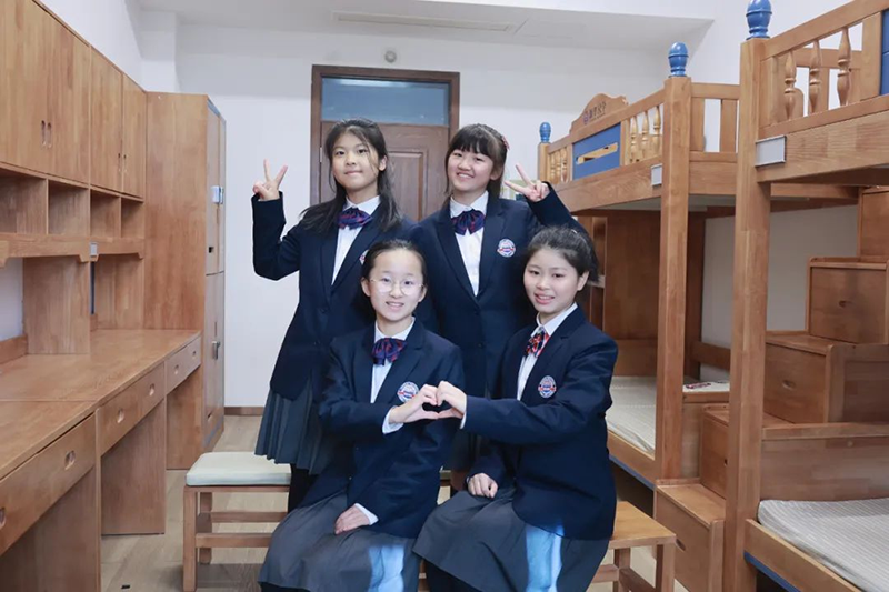 學(xué)校采用全封閉寄宿制管理,住宿環(huán)境為四人間,實(shí)木床,24小時(shí)冷熱水,24小時(shí)冷暖空調(diào),24小時(shí)校醫(yī)、宿管、老師陪伴、開通親情電話……宿舍不只是孩子睡覺(jué)的地方,也是精神家園,在這里感受家的溫暖。