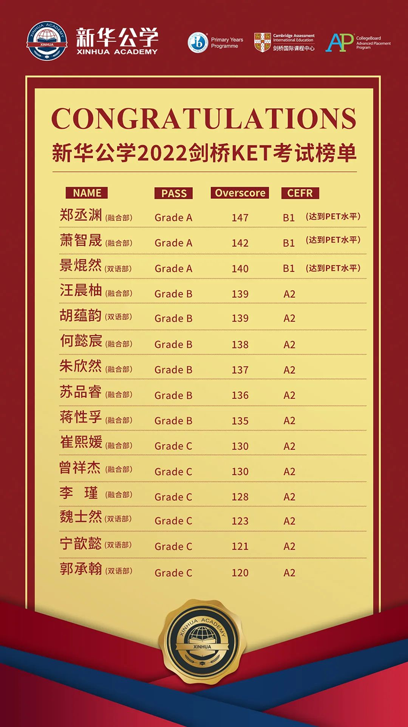 此次劍橋KET考試,我校雙語部8人參加,5人通過,其中1人達pet水平;融合部10人參加,全部通過,其中2人達pet水平。(* PET相當于B1水平,即國內高中畢業生水平。)