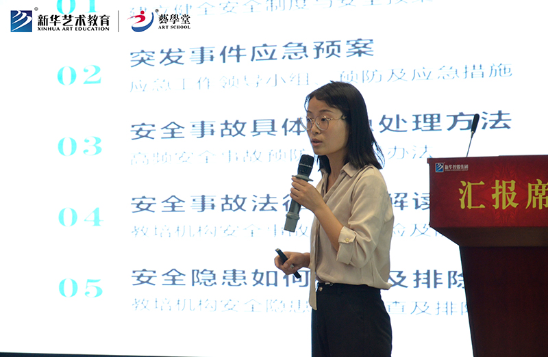活動伊始,新華藝術教育總經理蔡賢滿就藝學堂校區(qū)安全做重要指示,他強調:“夏季安全隱患高發(fā),藝學堂開展校區(qū)安全培訓講座,就是希望樹立教師安全意識、規(guī)范校區(qū)安全標準,為家長、孩子營造一個好的校區(qū)環(huán)境。”