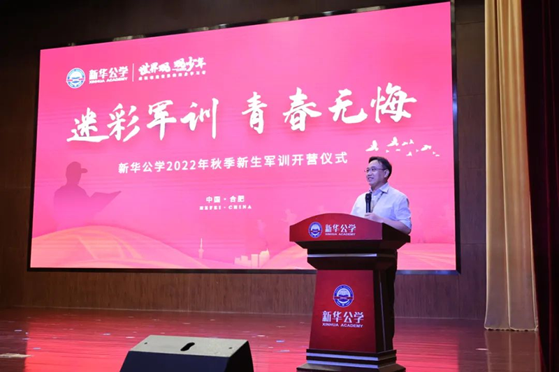 隨后新華公學(xué)總校長(zhǎng)秦新春給同學(xué)們帶來了殷切的期望和囑托。他表示,軍訓(xùn)是邁入人生新階段的第一課。因此,通過軍訓(xùn)的磨練后,他希望同學(xué)們能夠在生活上自立、學(xué)習(xí)上自主、健身上自覺、行為上自律、精神上自強(qiáng),樹立良好的學(xué)習(xí)和生活觀。