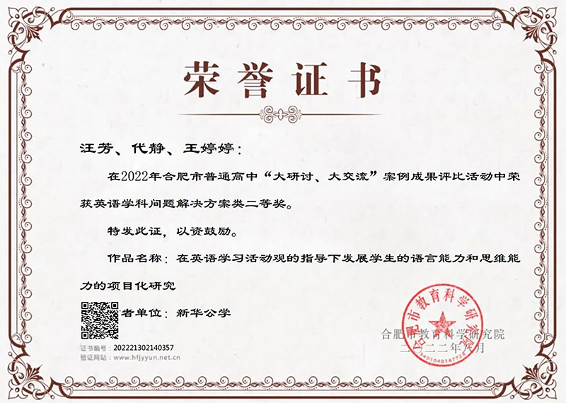 教師發展的核心是教師的專業化發展。合肥新華公學以教研為抓手,以個人專業發展計劃書為藍圖,通過“走出去”擴大視野,激發自我發展內驅力;“請進來”著眼于教師專業素質提升,創設教師想發展、能發展、會發展的環境。讓更多的優秀教師培養更多的未來世界杰出公民!