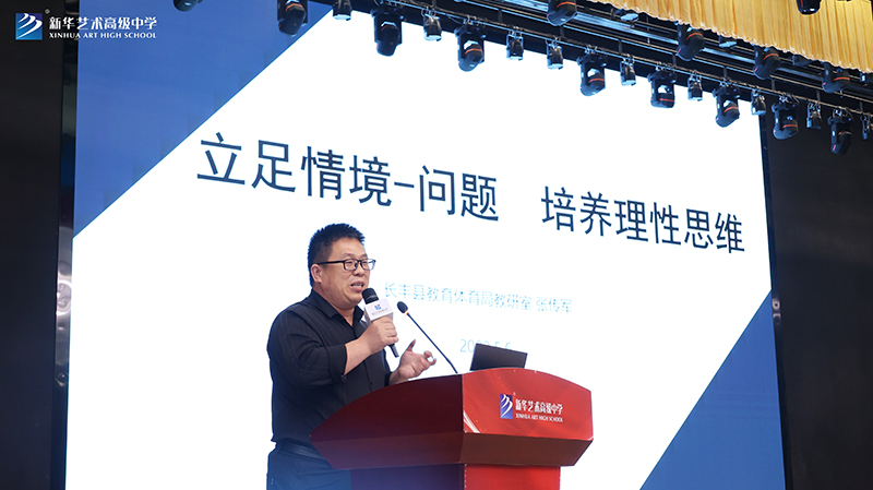 下午教研活動中,新華藝術高級中學副校長李愛國向參會領導及老師全面介紹了新華藝術高級中學辦學歷程、辦學成就、課程體系、課堂創新及特色德育工作等,給與會老師留下了深刻印象。