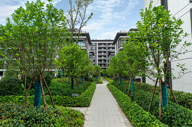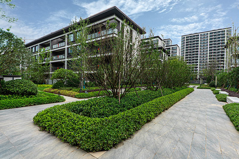 造園的匠心更是曠日持久,為營造豐富的歸家體驗感,因地制宜、收放開合、曲折布景,為業主營造“居士高蹤何處尋,居然城市有山林”的情境。